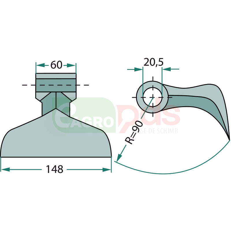 Ciocan batator - 148mm, 20,5x60, R90 - tocator vegetale Maschio - GRANIT [18063-RM-85]