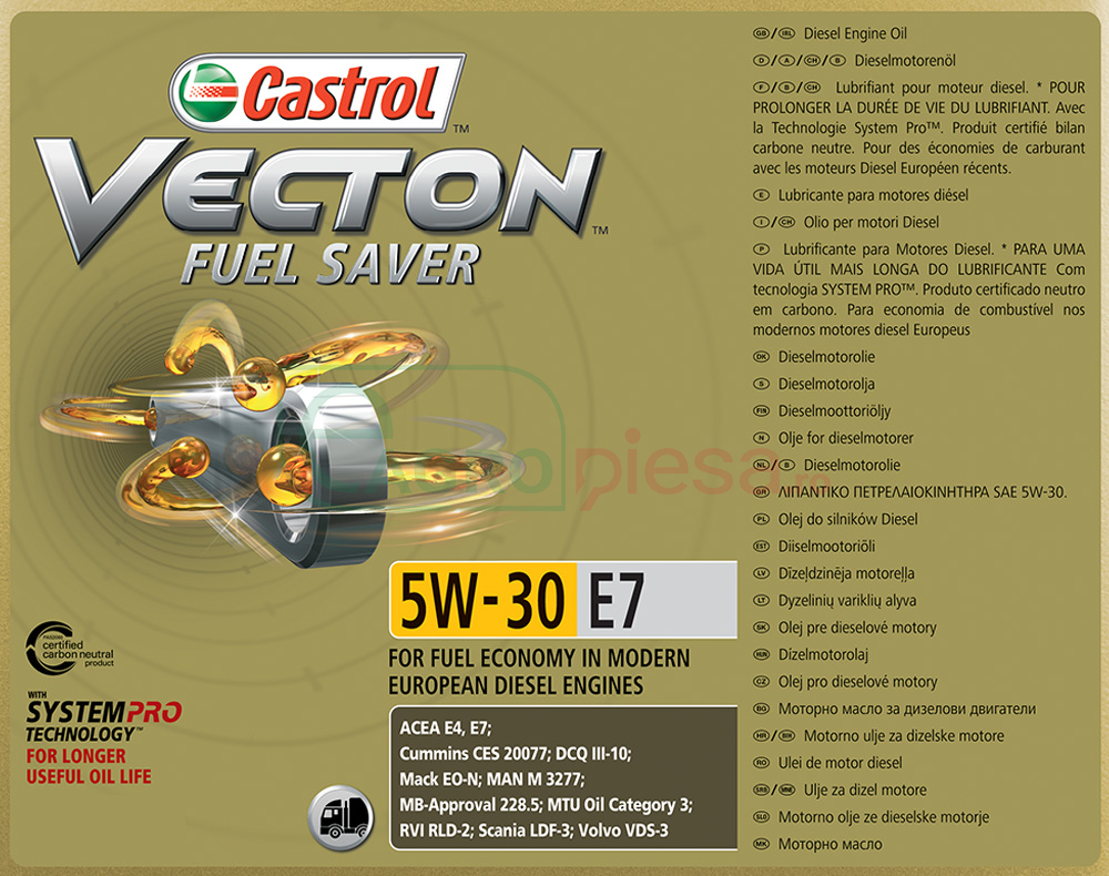 Ulei motor Vecton Fuel Saver 5W-30 E7, 208 l - Castrol [154C32]
